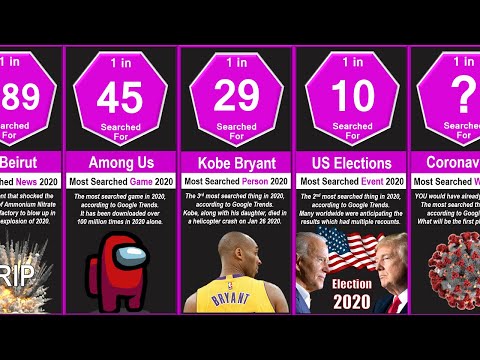 From Kobe Bryant to US Elections, Among Us to Cyberpunk 2077, Paradise to Tiger King, we compare the most viral and trending topics of 2020 and what are the odds you have searched for this event. We list the most popular events that shaped 2020 that many of us remember, but how many of you actually experienced them, what is the probability, that is 1 in how many of you all actually searched for them? Music used: In Dreams by Scott Buckley (CC4.0), https://www.scottbuckley.com.au/library/in-dreams/ Sources: Google Trends & Semrush Keywords Analytics. Disclaimer: The 1 in XYZ searches for in 2020 refers to the global searches divided by the human population and is only a rough estimate for the number who searched for the particular event. 2020 Search Volume is the total number of searches worldwide for the keywords and associated keywords for the year 2020, up to mid December only. Statistics may contain wide error margins.